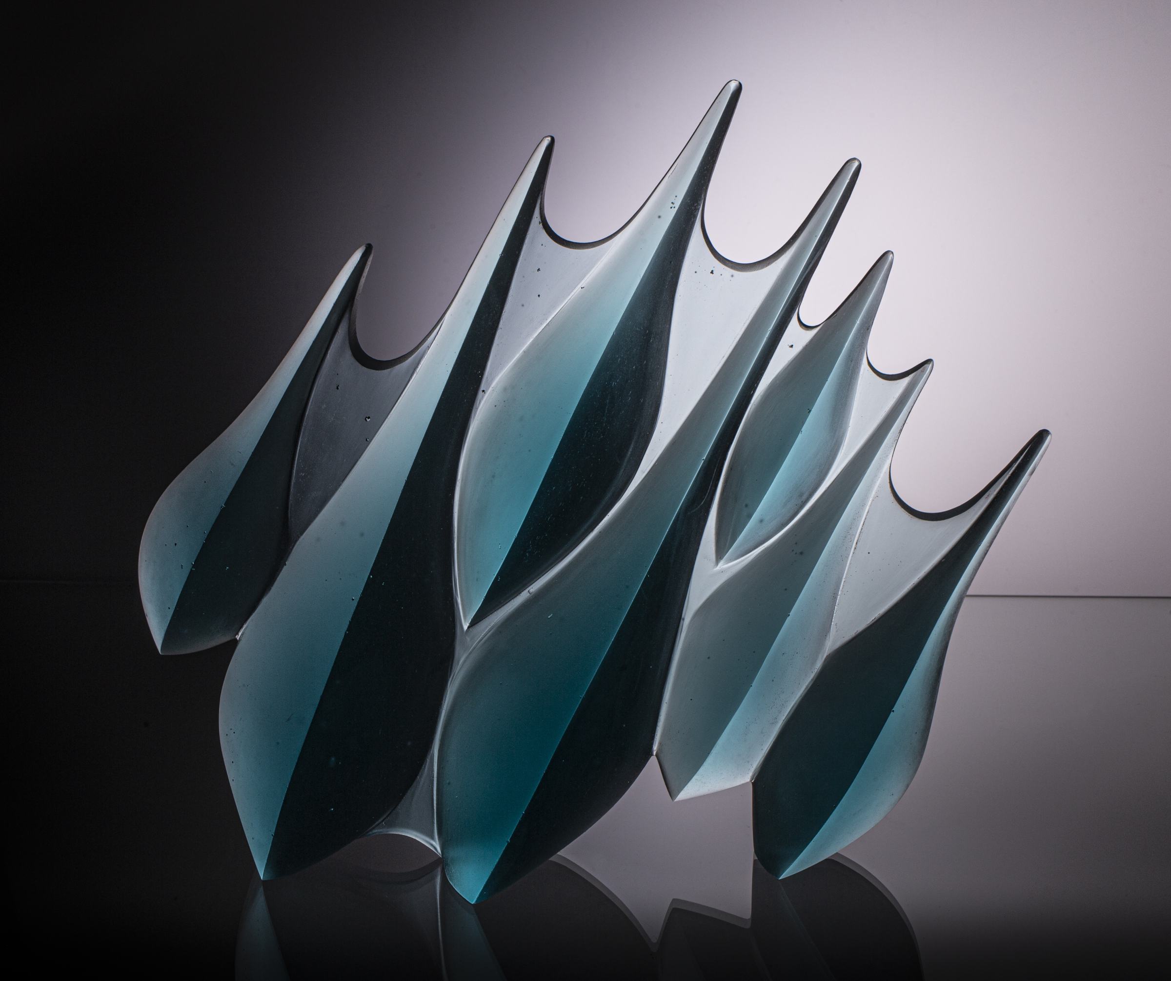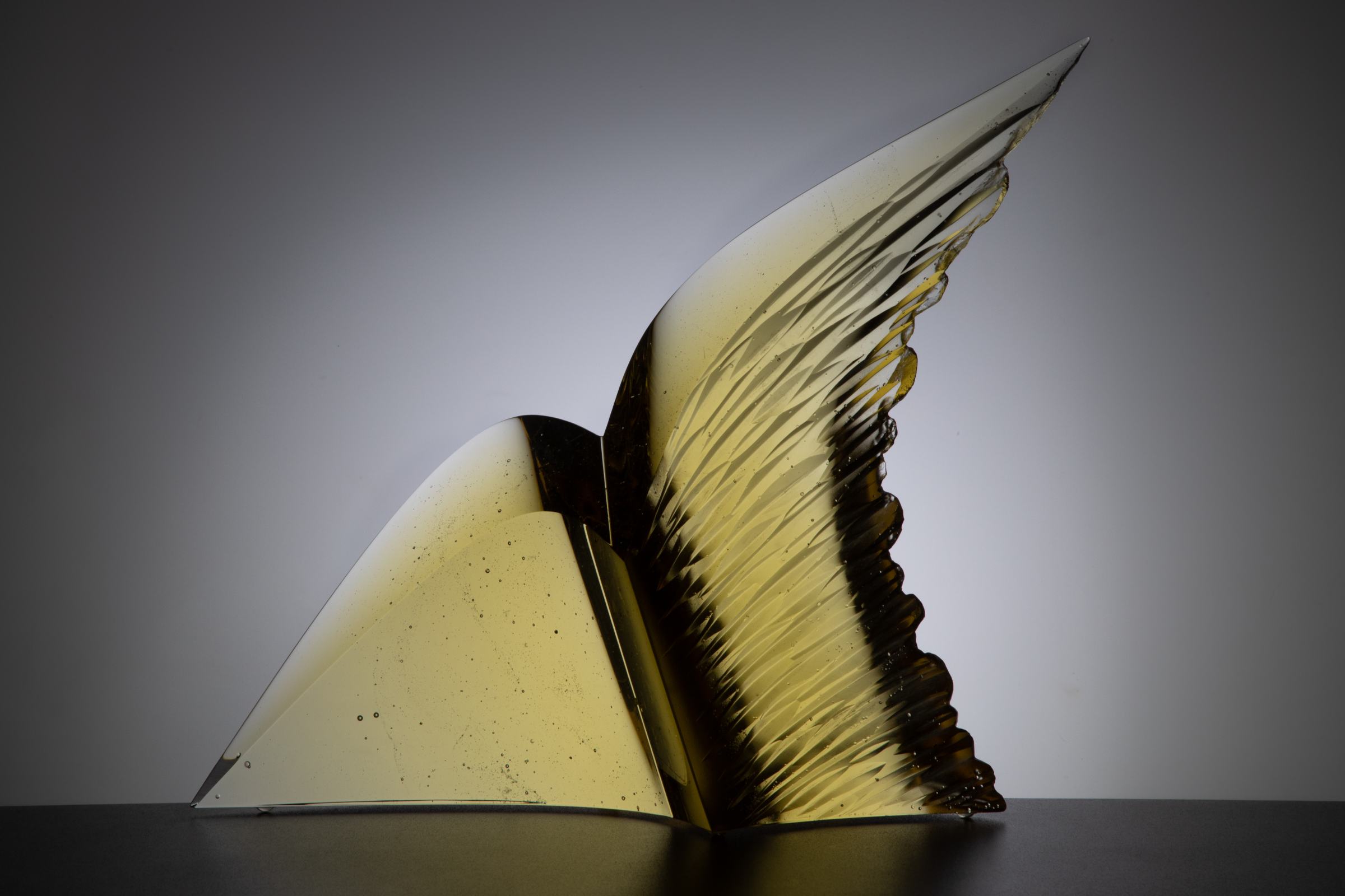 Perutě, rok 2025, tavený křišťál, broušený a leštěný, signováno Z. Kunst, celkové rozměry 28 x 30 x 11 cm. Slova autora: Roztažená křídla vyzývají k letu volným prostorem spolu s touhou po sv