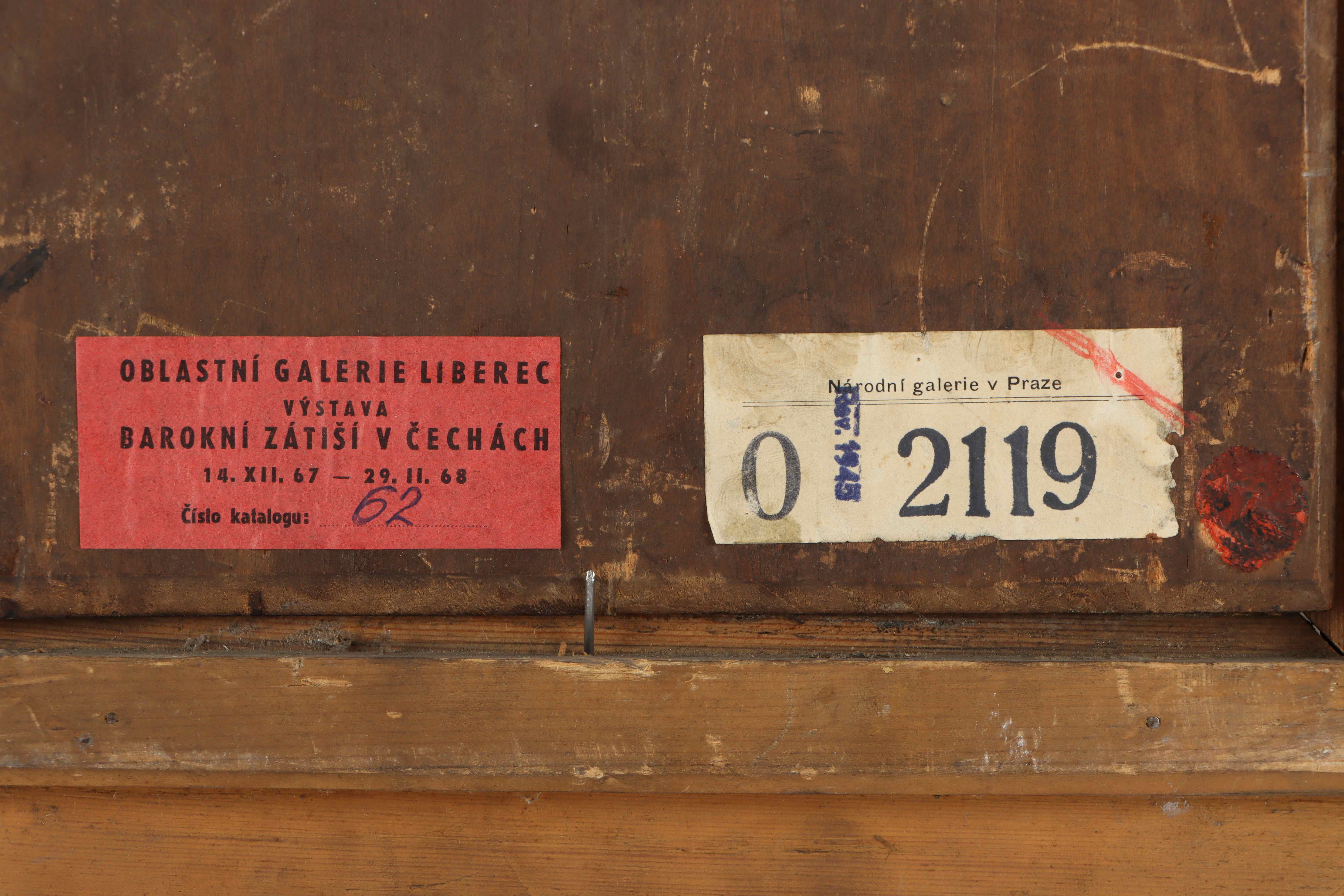 Vystaveno: Barokní zátiší v Čechách, Oblastní galerie Liberec, prosinec 1967 - únor 1968, katalogové číslo 62.