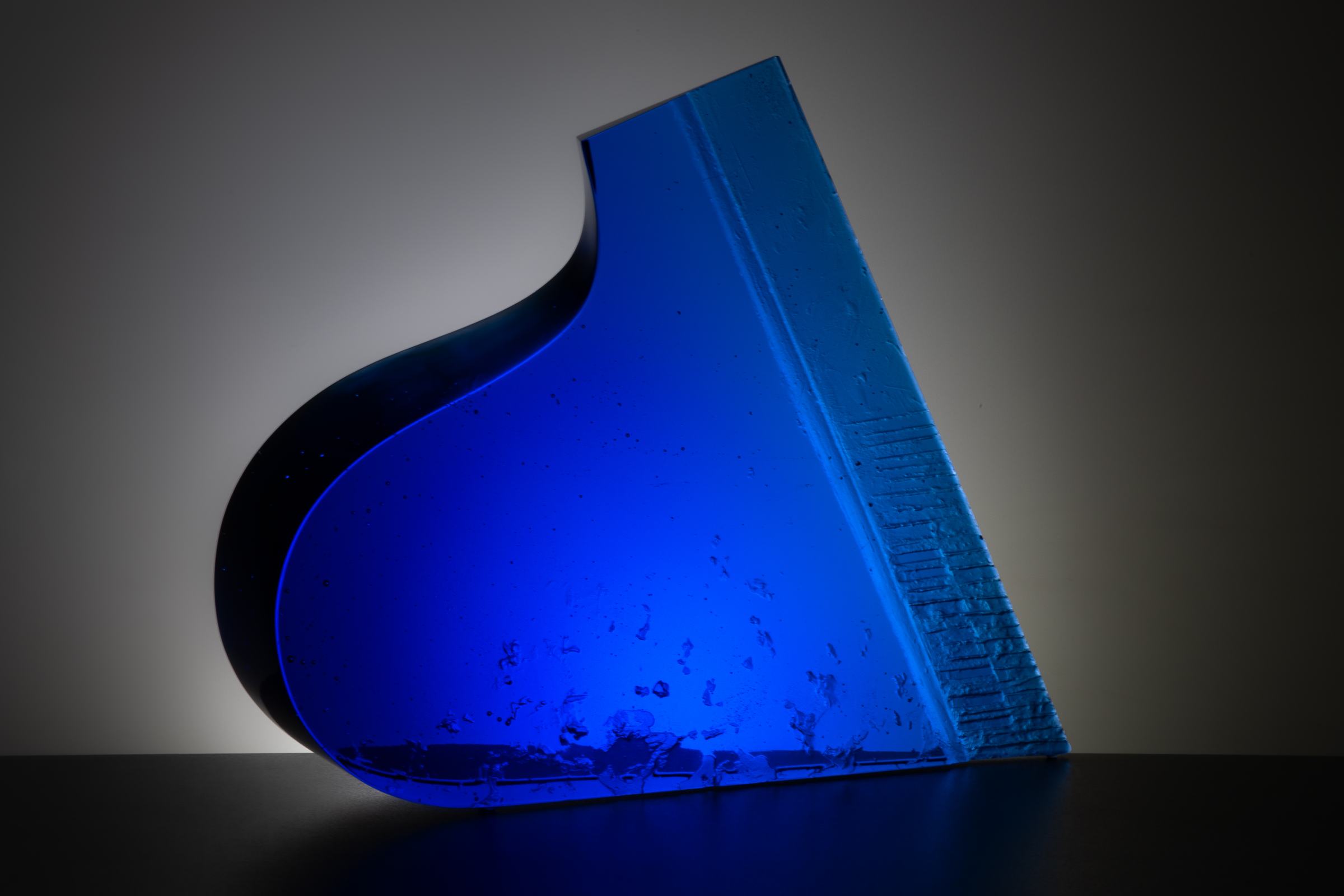 Paní Viola, rok 2025, tavený křišťál, broušený a leštěný, signováno Z. Kunst, celkové rozmě-ry 43 x 14 x 7 cm. Slova autora: Pro mě toto dílo představuje prolnutí hudby v p