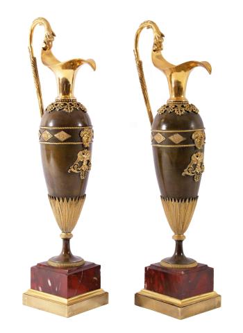 Francie, Paříž, kolem roku 1810, luxusní model bronzových konví vyrobených ve věhlasné dílně Clauda Galleho (1759-1815), velmi kvalitní odlitky s precizním cizelerským opracováním, bronz zlacený v